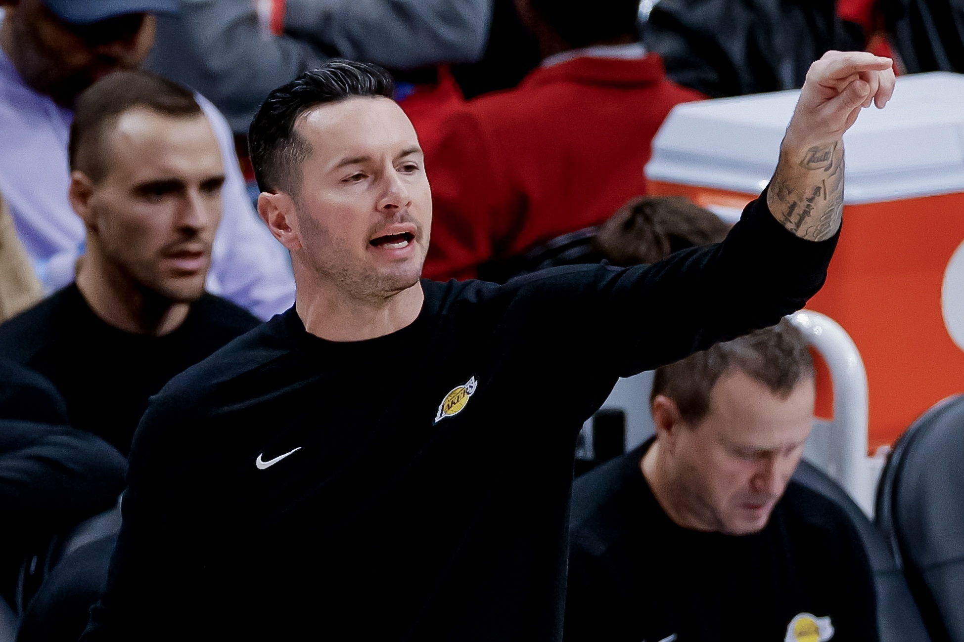 具體的陣容選擇還有待觀察。例如,讓海斯和賈里德-范德比爾特一起上場(chǎng)的決定似乎有點(diǎn)奇怪,因?yàn)樗麄兪呛岁?duì)核心輪換陣容中的兩名非射手球員。但這里有一個(gè)明確的邏輯。在賽季開(kāi)始前,雷迪克曾表示——哪怕只是開(kāi)玩笑——他希望湖人隊(duì)每場(chǎng)比賽投50個(gè)三分球。很明顯,這并沒(méi)有發(fā)生。只有掘金隊(duì)、猛龍隊(duì)和快船隊(duì)比湖人隊(duì)投得更少。但在周二對(duì)陣爵士隊(duì)的比賽中,湖人隊(duì)出手了42個(gè)三分球,追平了他們本賽季三分球出手次數(shù)第四高的紀(jì)錄。