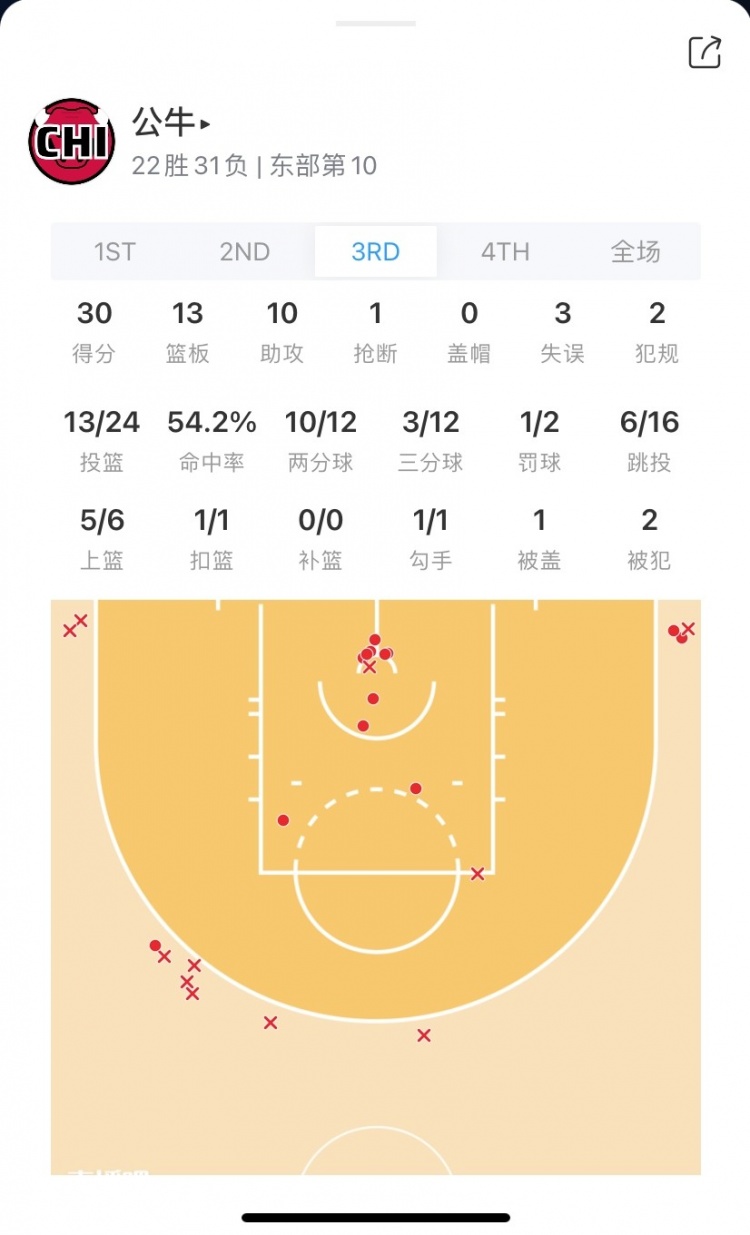 2月12日訊 NBA常規賽,公牛三節59-105落后活塞。第三節,公牛進攻端終于回暖,外線三分也命中3記,內線攻筐效率很不錯,單節砍下30分,超上半場兩節之和(29分);布澤利斯單節4中4拿到10分。 本文標簽: NBA 籃球 公牛