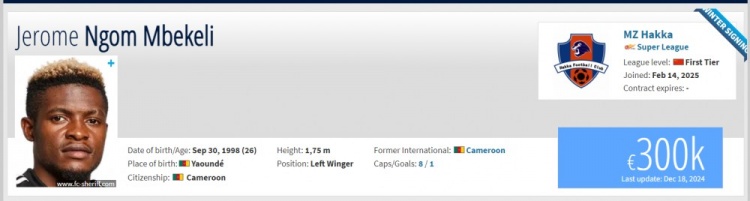 喀麥隆球員熱羅姆·恩戈姆·姆貝凱利(Jerome Ngom Mbekeli)轉會梅州客家。恩戈姆今年26歲,司職邊鋒,曾入選喀麥隆國家隊。此前在摩爾多瓦警長隊效力,為該隊出場了42次,打進6球。 ??? 本文標簽: 足球 中超 中國足球 梅州客家 轉載