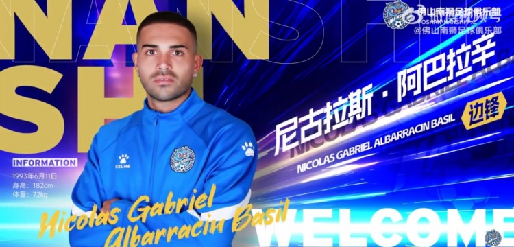 經俱樂部與球員本人友好協商并達成一致,即日起,球員尼古拉斯·加布里埃爾·阿巴拉辛·巴西爾(NICOLAS GABRIEL ALBARRACIN BASIL)正式加盟佛山南獅足球俱樂部。新賽季,他將身披南獅戰袍,為球隊新賽季的征程注入堅實力量!
