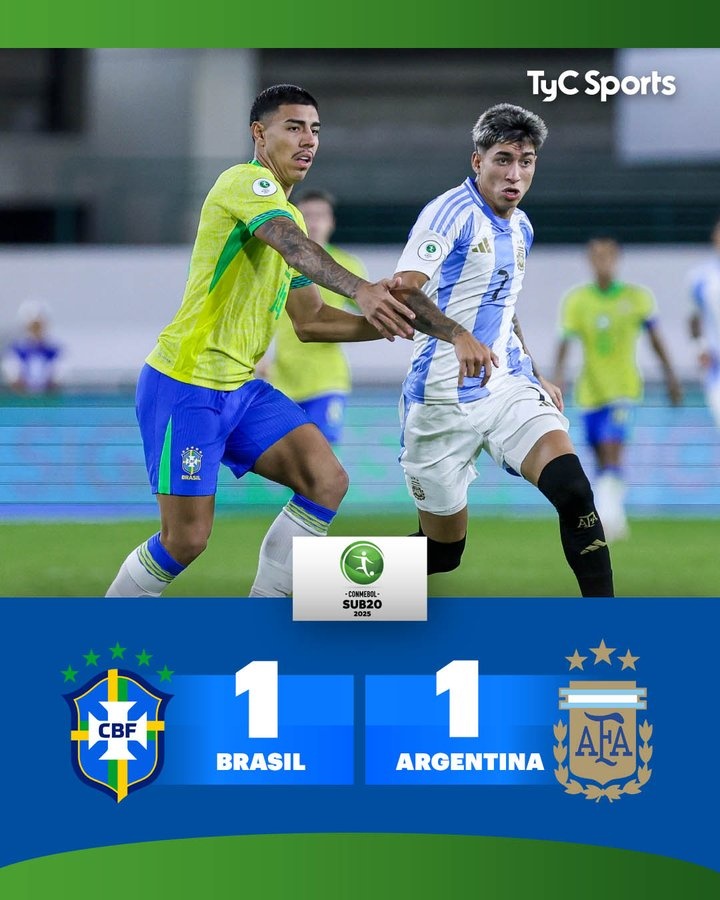2月14日訊 今天早晨,阿根廷U20在南美U20青少年錦標賽決賽輪中1-1戰平巴西U20,賽事將在最后一輪決出冠軍。