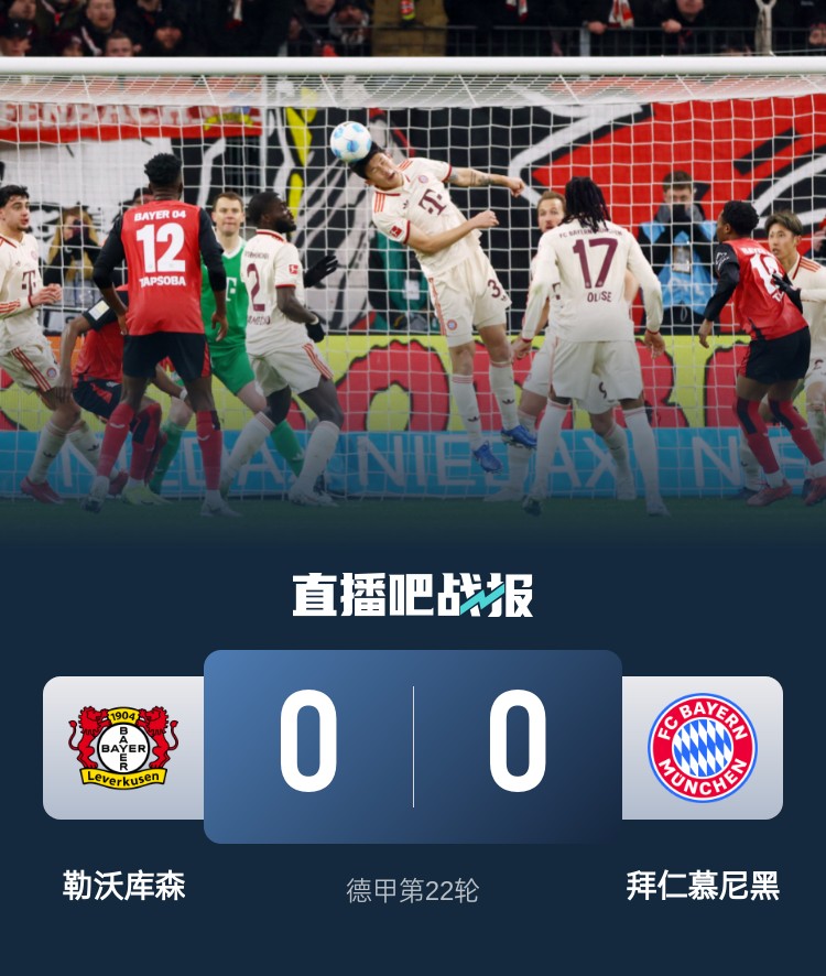 德甲本輪焦點大戰,勒沃庫森0-0戰平拜仁。拜仁7連勝遭終結,8分領跑聯賽。