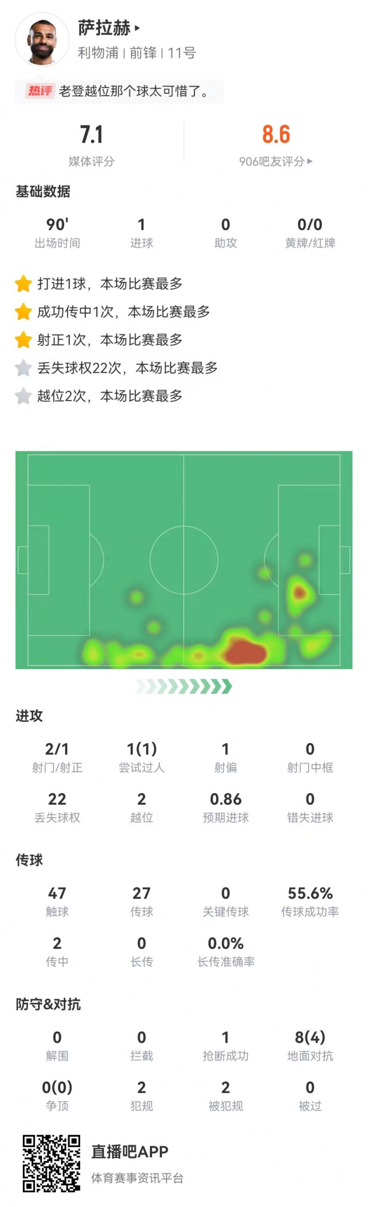 2月17日訊 利物浦在本輪英超2-1險勝狼隊,薩拉赫本場數據如下:首發踢滿全場1球預期進球0.8647觸球27傳球、15成功,成功率56%2傳中、1成功2射門、1射正1過人、1成功8對抗、4成功22丟失球權2犯規2造犯規2越位1搶斷獲評7.1分 本文標簽: 足球 英超 利物浦 狼隊