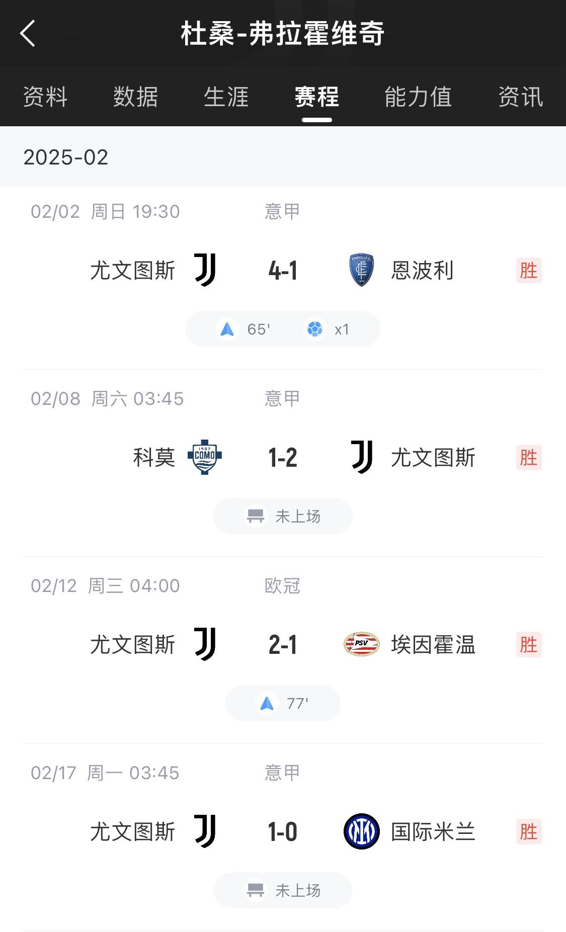 02月17日訊 意甲第25輪尤文主場1-0擊敗國米,本場弗拉霍維奇在替補席上未登場。2月份至今尤文的4場比賽,弗拉霍維奇2場未登場,2場替補,打入1球。弗拉霍維奇稅后年薪1200萬歐,排名隊內第一,他與尤文的合同明年夏天到期。 本文標簽: 足球 意甲 尤文圖斯