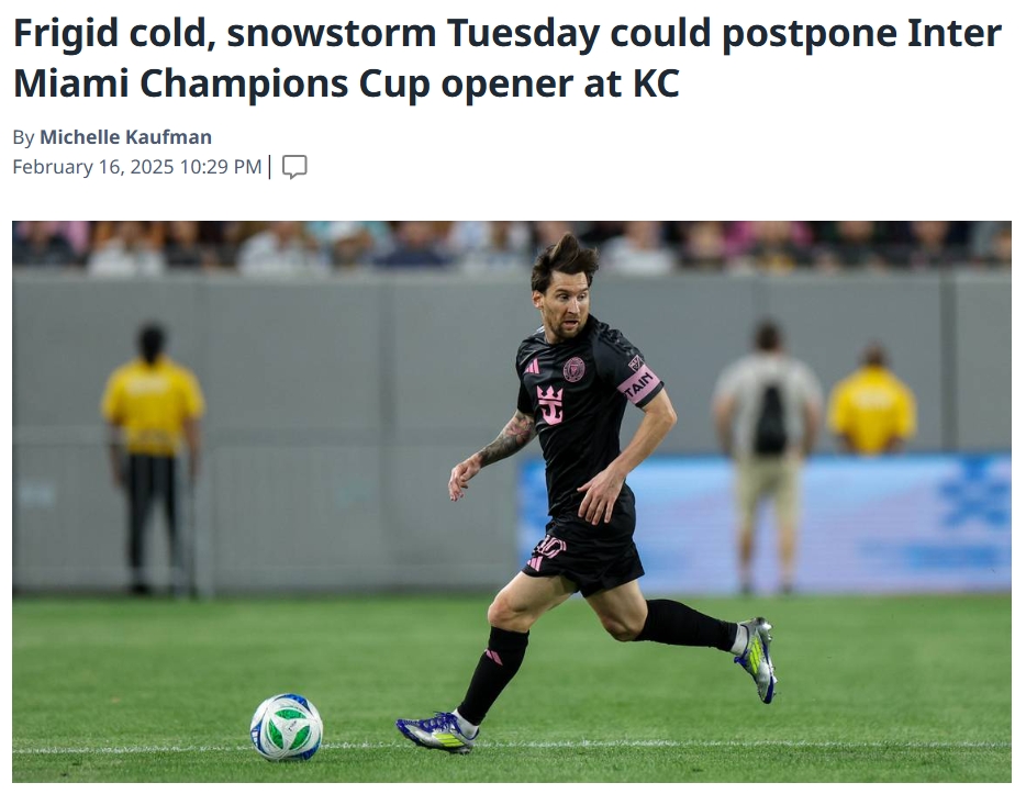 02月17日訊 據(jù)《邁阿密先驅(qū)報(bào)》報(bào)道,中北美聯(lián)冠軍杯首輪邁阿密國際客戰(zhàn)堪薩斯城競技的比賽可能因?yàn)闃O端天氣推遲。