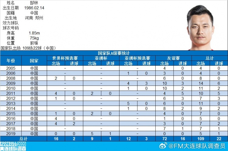 2月18日訊 在2月16日中國足協為郜林舉辦退役儀式后,博主“FM大連球隊調查員”在社媒公布了郜林的生涯數據統計。郜林生涯數據如下:俱樂部509場147球,其中申花81場20球、廣州恒大369場113球、深圳隊59場14球;國家隊109場22球。圖片來源:FM大連球隊調查員 本文標簽: 足球 中超 中國足球 中國男足 上海申花 廣州(已解散) 中甲