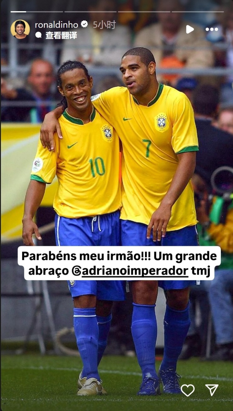 2月18日訊 小羅更新社媒動態,祝前巴西隊友阿德里亞諾生日快樂。阿德里亞諾迎來43歲生日,小羅社媒曬出與他昔日在國家隊的合照,并配文:“祝你生日快樂我的兄弟!給你大大的擁抱!” 本文標簽: 足球 巴西 意甲 國際米蘭
