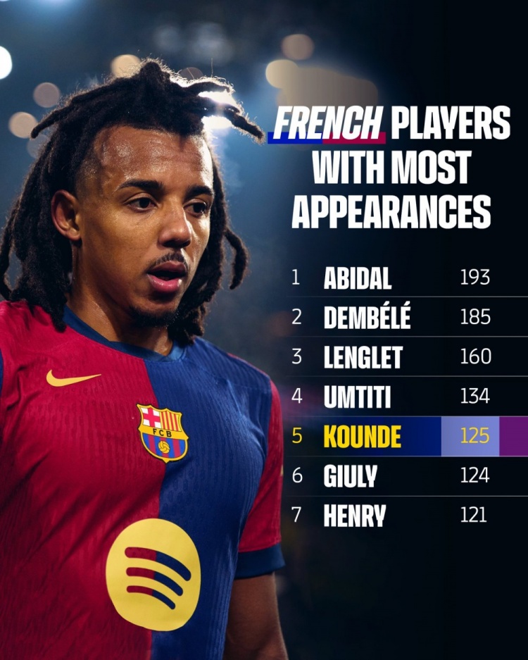 2月18日訊 西甲第24輪比賽,孔德替補出場,巴薩主場1-0擊敗巴列卡諾。巴薩官方社媒曬出隊史法國球員出場次數榜單,孔德為巴薩出戰125場比賽,超越久利,排名第5位。巴薩隊史法國球員出場次數排名:阿比達爾——193登貝萊——185朗格萊——160烏姆蒂蒂——134孔德——125久利——124亨利——121 本文標簽: 足球 西甲 巴塞羅那