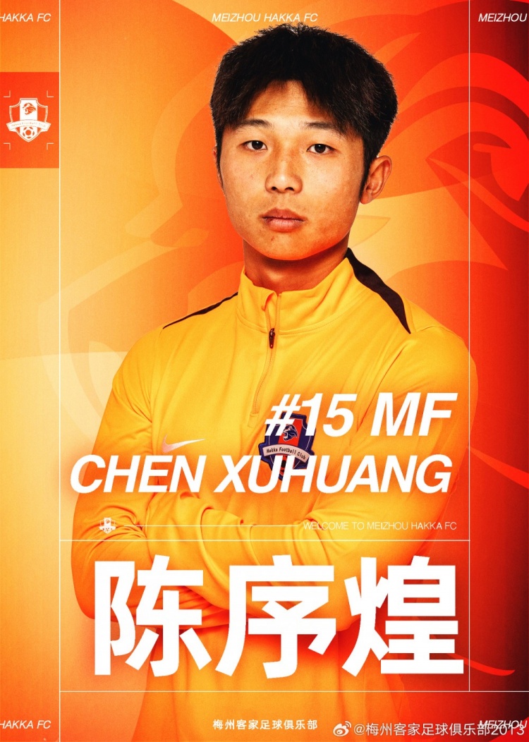 與球員本人友好協商一致,陳序煌已完成簽約手續,成功加盟梅州客家足球俱樂部,將隨隊征戰2025年中超聯賽及各項賽事。