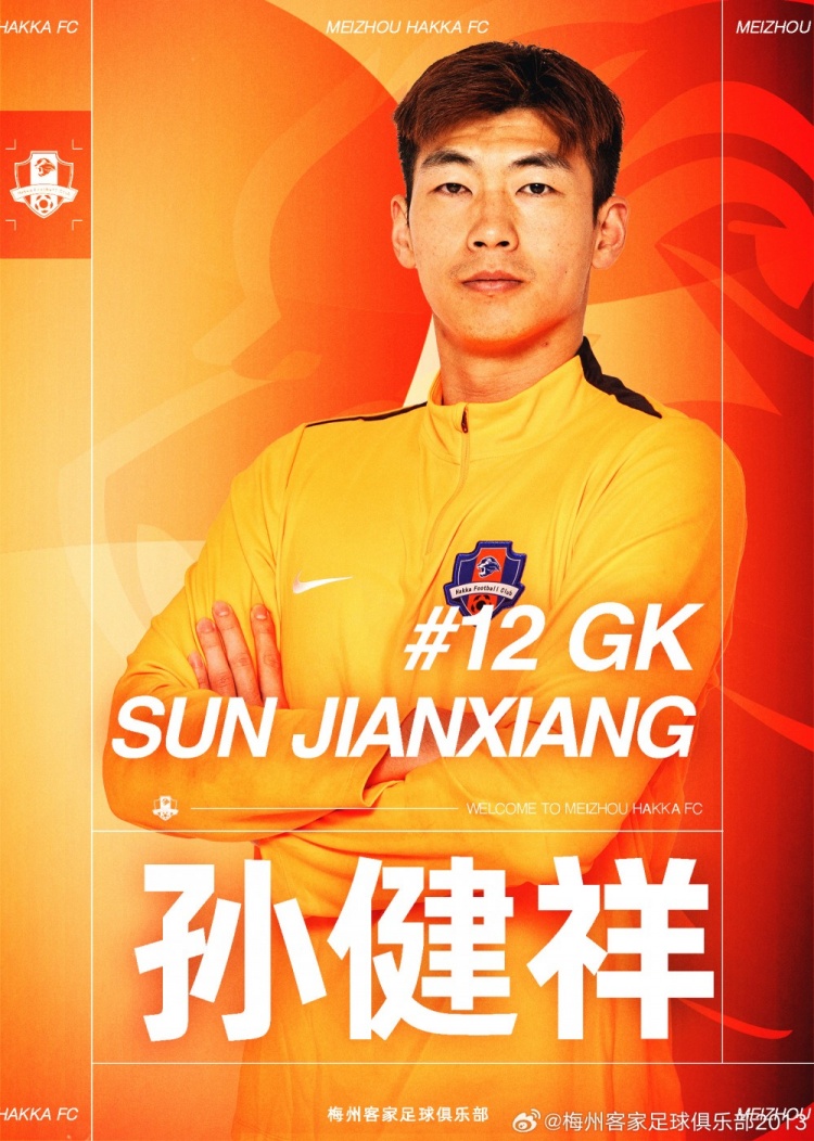 與球員本人友好協商一致,孫健祥已完成簽約手續,成功加盟梅州客家足球俱樂部,將隨隊征戰2025年中超聯賽及各項賽事。