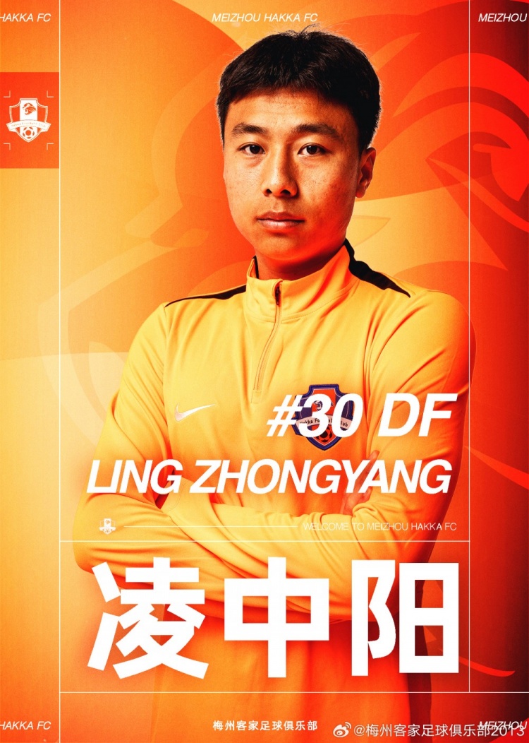 與球員本人友好協商一致,凌中陽已完成簽約手續,成功加盟梅州客家足球俱樂部,將隨隊征戰2025年中超聯賽及各項賽事。
