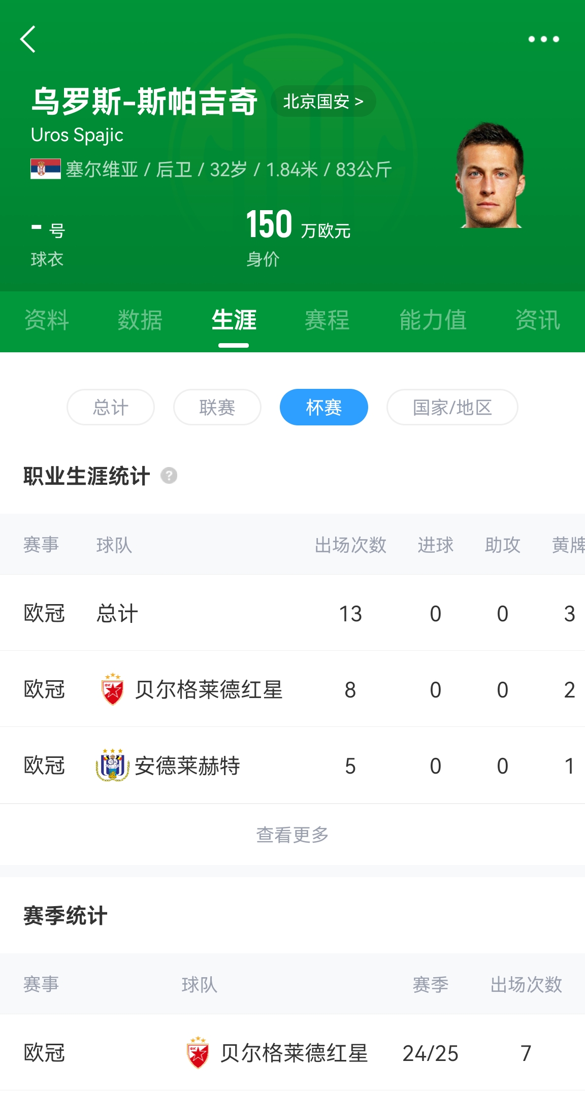02月18日訊 北京國安官方宣布,32歲的貝爾格萊德紅星隊長&中衛斯帕吉奇加盟球隊!