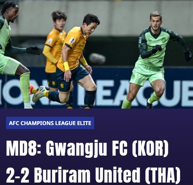2月18日訊 北京時間今晚結束的亞冠精英聯(lián)賽東亞區(qū)聯(lián)賽階段第8輪,光州FC主場2-2戰(zhàn)平武里南聯(lián)。