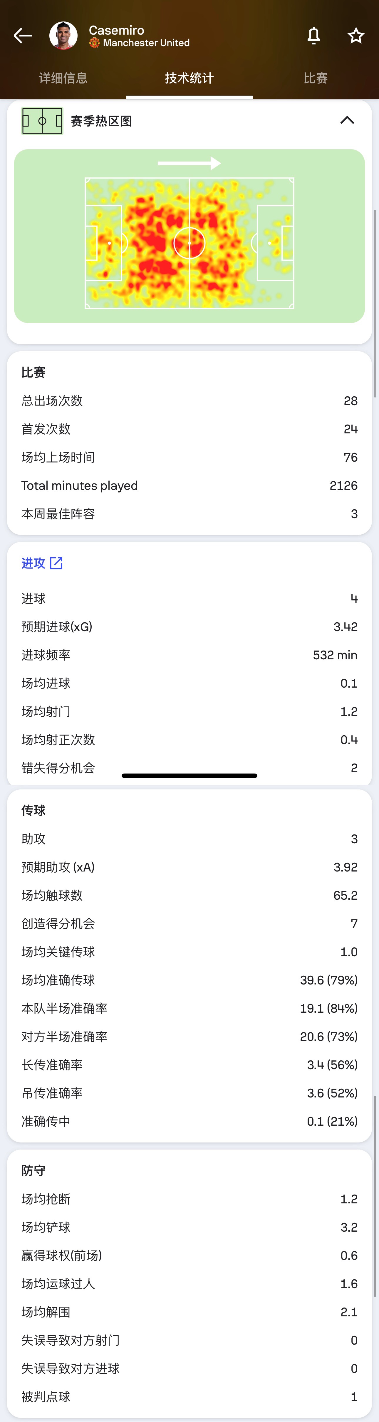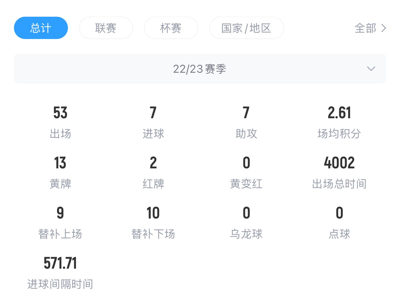 卡塞米羅22/23賽季英超數據↓
