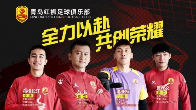 2月20日訊 官方消息,石哲、李亞楠、布格拉汗、曹孝義四名球員正式加盟中甲青島紅獅。