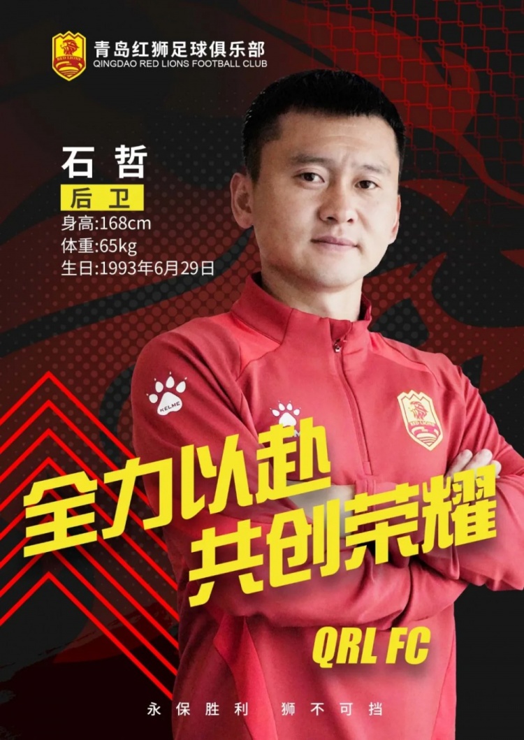 石哲,出生于1993年6月29日,身高168cm,體重65kg,他跑動(dòng)積極,拼搶兇狠,腳下細(xì)膩,戰(zhàn)術(shù)執(zhí)行力強(qiáng),可勝任場(chǎng)上多個(gè)位置。2019賽季石哲以絕對(duì)主力身份為青島隊(duì)在中甲聯(lián)賽中奪冠并沖超成功立下汗馬功勞;2023賽季石哲轉(zhuǎn)會(huì)云南玉昆,幫助球隊(duì)沖甲成功;2024賽季助云南玉昆獲得中甲聯(lián)賽冠軍并成功沖超。期待他在加盟球隊(duì)后迅速融入技戰(zhàn)術(shù)體系,用經(jīng)驗(yàn)和斗志為紅獅貢獻(xiàn)力量!