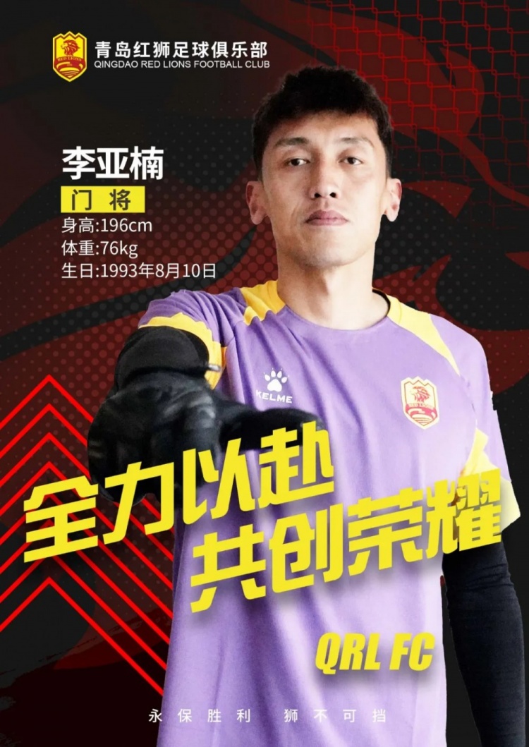 李亞楠,出生于1993年8月10日,身高196cm,體重76kg,腳下技術(shù)出色,高空球控制面積大,擅長(zhǎng)一對(duì)一正面封堵。作為門將,他沉著穩(wěn)定,2021-2023年加盟蘇州東吳足球俱樂部期間,中甲出場(chǎng)25場(chǎng),曾摘得官方頒發(fā)的南京賽區(qū)聯(lián)賽第18輪最佳球員榮譽(yù)。相信他會(huì)以更好的狀態(tài)投入到青島紅獅的新征程!
