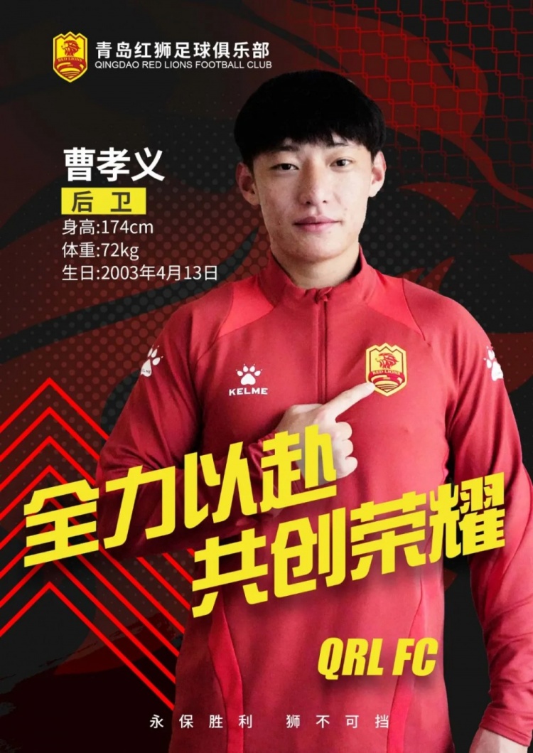 曹孝義,出生于2003年4月13日,身高174cm,體重72kg,場(chǎng)上司職邊后衛(wèi)。2018年入選湖北足協(xié)U15隊(duì),并以隊(duì)長(zhǎng)身份獲得全國青超聯(lián)賽冠軍;2023賽季簽約無錫吳鉤隊(duì),中甲聯(lián)賽出場(chǎng)14次,1粒進(jìn)球;足協(xié)杯出場(chǎng)1次,首發(fā)并打滿全場(chǎng)。加入青島紅獅,希望他發(fā)揮所長(zhǎng),在穩(wěn)固后防、邊路往返、組織進(jìn)攻和后場(chǎng)出球上給予紅獅更多助力!