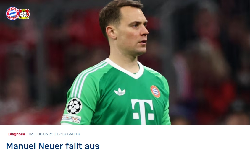 03月06日訊 拜仁官方消息,諾伊爾右小腿肌肉纖維撕裂,將暫時缺陣。據德媒報道,諾伊爾將缺席3-4場比賽。這也意味著諾伊爾將無緣對陣勒沃庫森的歐冠1/8決賽次回合比賽。在拜仁3-0勒沃庫森的比賽中,諾伊爾在第56分鐘傷退,小將烏爾比希替補登場。據德媒《圖片報》報道,諾伊爾是在慶祝球隊第2粒進球時沖刺受傷的。拜仁后續賽程↓ 本文標簽: 足球 德甲 拜仁慕尼黑