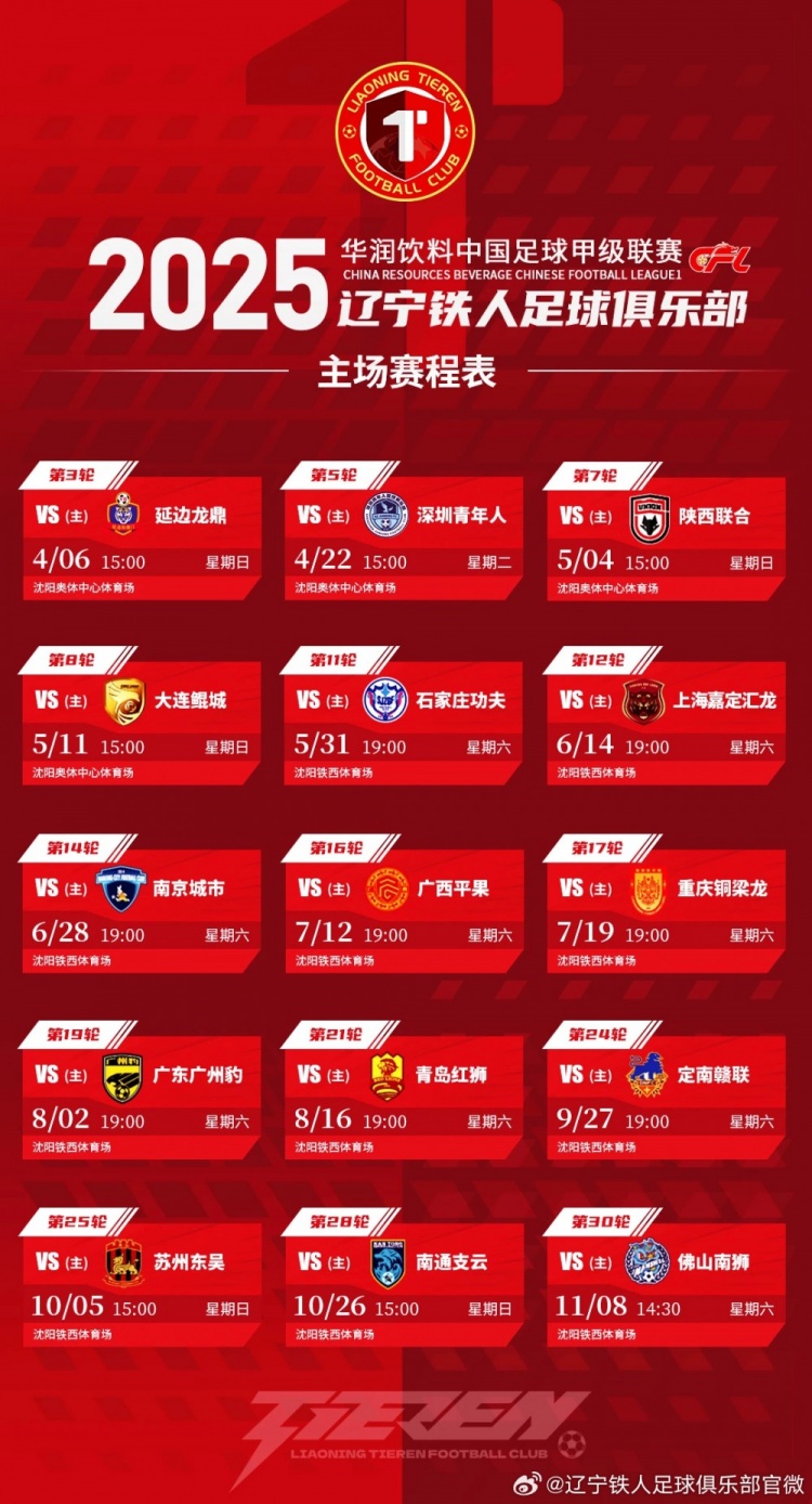 2025賽季遼寧鐵人一線隊(duì)大名單、主場賽程