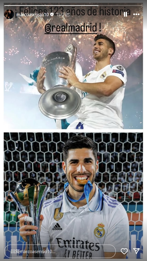 3月7日訊 皇馬成立于1902年3月6日,昨天是皇馬成立123周年的紀念日。前皇馬球員阿森西奧更新了社媒,向俱樂部送上祝賀。阿森西奧曬出昔日在皇馬捧杯照片,并寫道:“123周年快樂。”阿森西奧2015年7月加盟皇馬,2023年7月離隊,共代表球隊出戰286場比賽,貢獻61球32助攻。 本文標簽: 足球 西甲 皇家馬德里