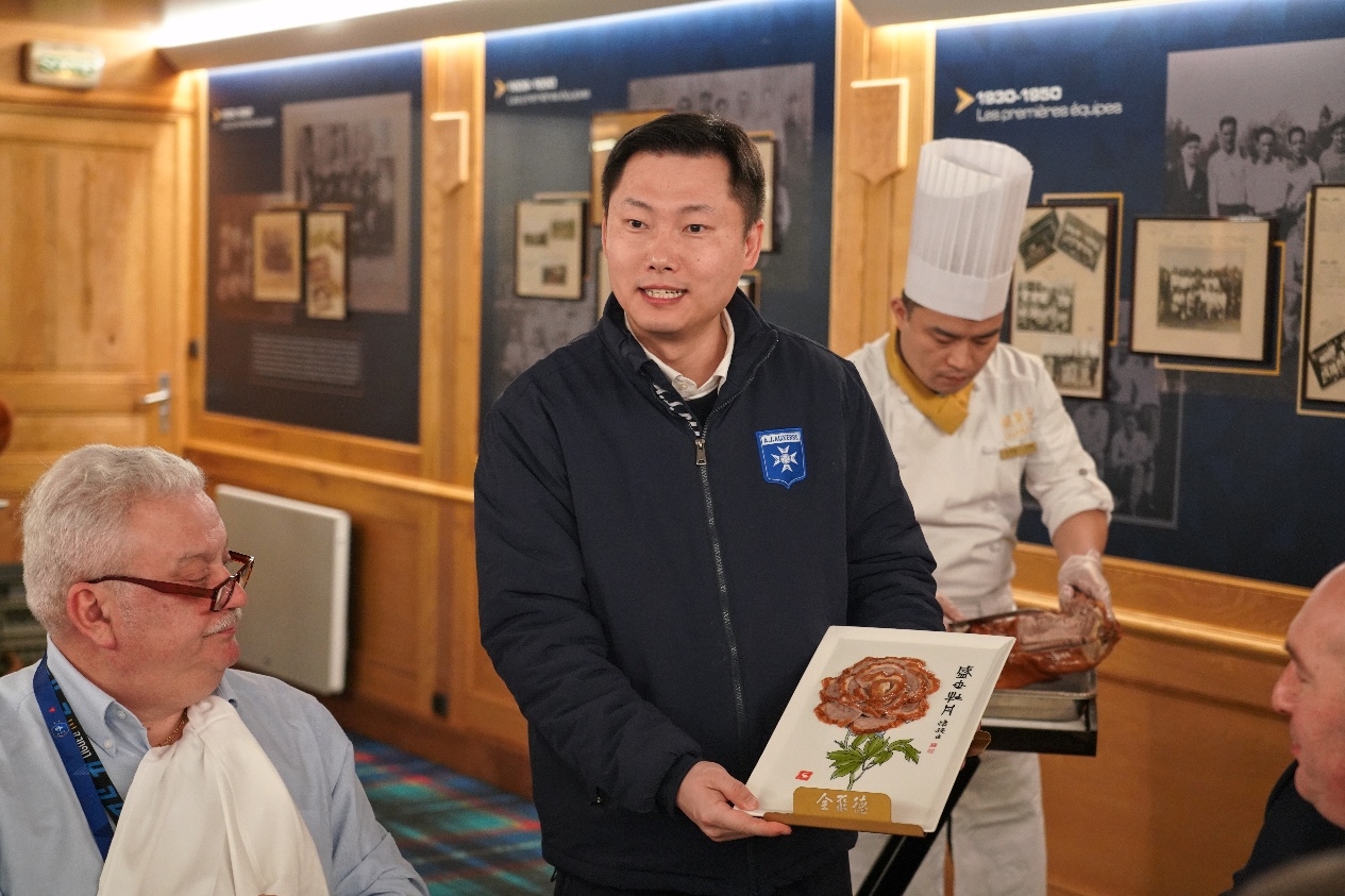 會(huì)面結(jié)束后,周云杰先生邀請(qǐng)迪亞洛主席一同共進(jìn)午餐。一同出席午宴的重要成員還有歐塞爾市長(zhǎng)馬勞、斯特拉斯堡主席馬克-凱勒和足協(xié)領(lǐng)導(dǎo)小組成員帕朗。本次午宴特別邀請(qǐng)了波爾多全聚德的主廚操刀制作烤鴨,希望各位客人可以在法國(guó)品嘗到地道的中國(guó)美食和文化。