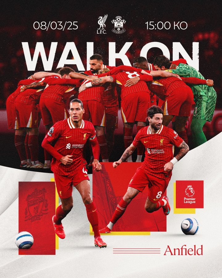 3月8日訊 今晚11點,利物浦將在英超主場迎戰南安普頓,紅軍在官推曬出海報,為比賽預熱。海報上,范迪克、薩拉赫、索博斯洛伊等人出鏡,利物浦為海報打上“Walk On”(繼續前行)的大字。 本文標簽: 足球 英超 利物浦