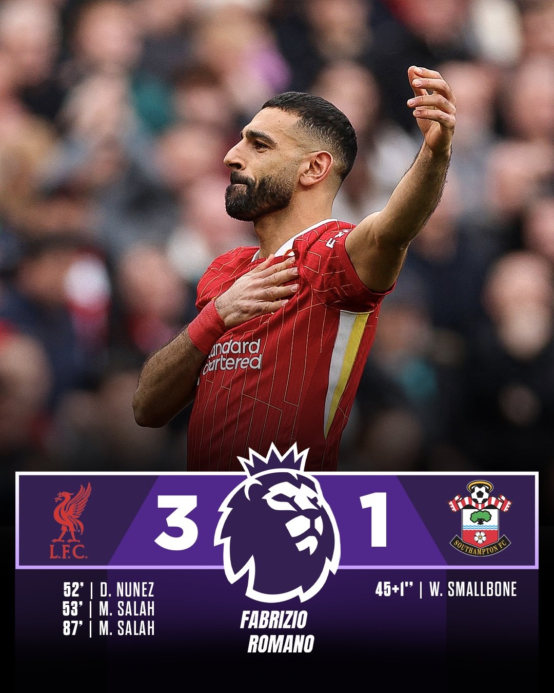 03月09日訊 本輪英超,利物浦3-1擊敗圣徒,球隊已賽29場積70分,多賽2場的情況下領先優勢達到16分!