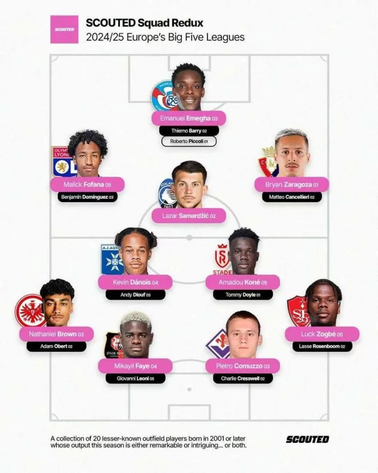 Scouted評選出了本賽季五大聯賽U23(2001年及其以后出生)不出名但發揮超群的最佳陣容,法甲歐塞爾俱樂部青訓中場球員凱文-達努瓦入選。