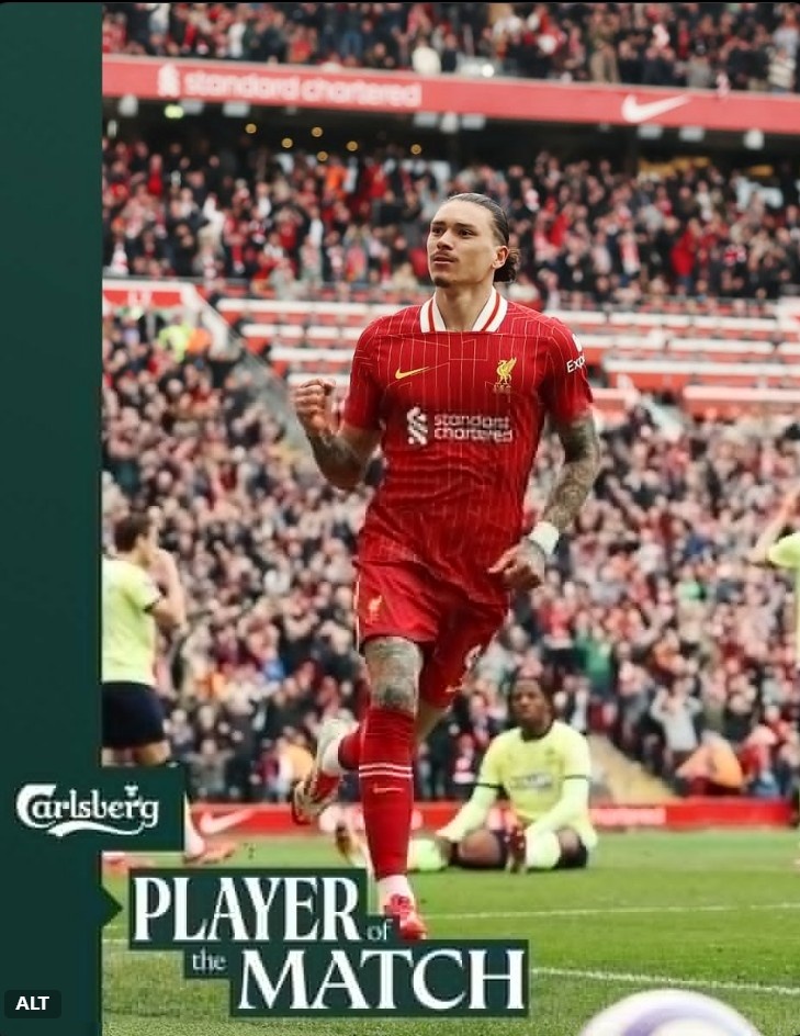 本場比賽下半場努涅斯先是破門扳平比分,隨后還創造一粒點球,賽后他也當選利物浦官方評選出的本場隊內最佳球員。