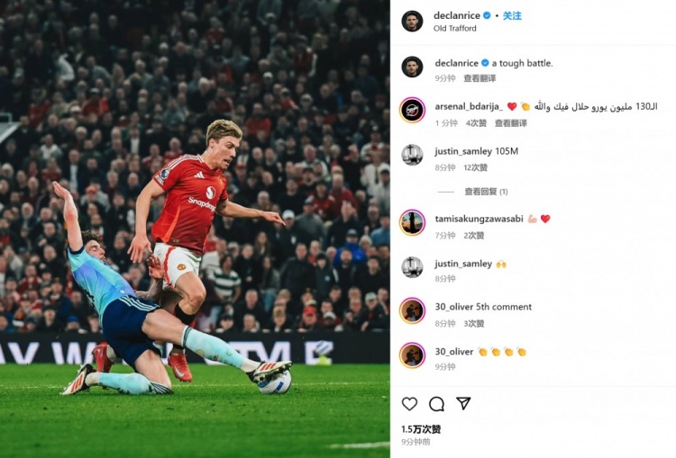 3月10日訊 阿森納在本輪英超1-1戰平曼聯,賴斯攻防兩端均交出頂級表現。第74分鐘,阿森納右路策動攻勢,大禁區線附近賴斯接到廷伯的做球,起腳轟門攻破奧納納十指關。第84分鐘,阿森納后場傳球出現失誤,霍伊倫幾乎單刀球的機會,禁區內被賴斯倒地放鏟破壞。賴斯也通過社媒曬出自己倒地放鏟破壞霍伊倫單刀球的瞬間照,并配文:“一場艱難的戰斗。” 本文標簽: 足球 英超 曼聯 阿森納