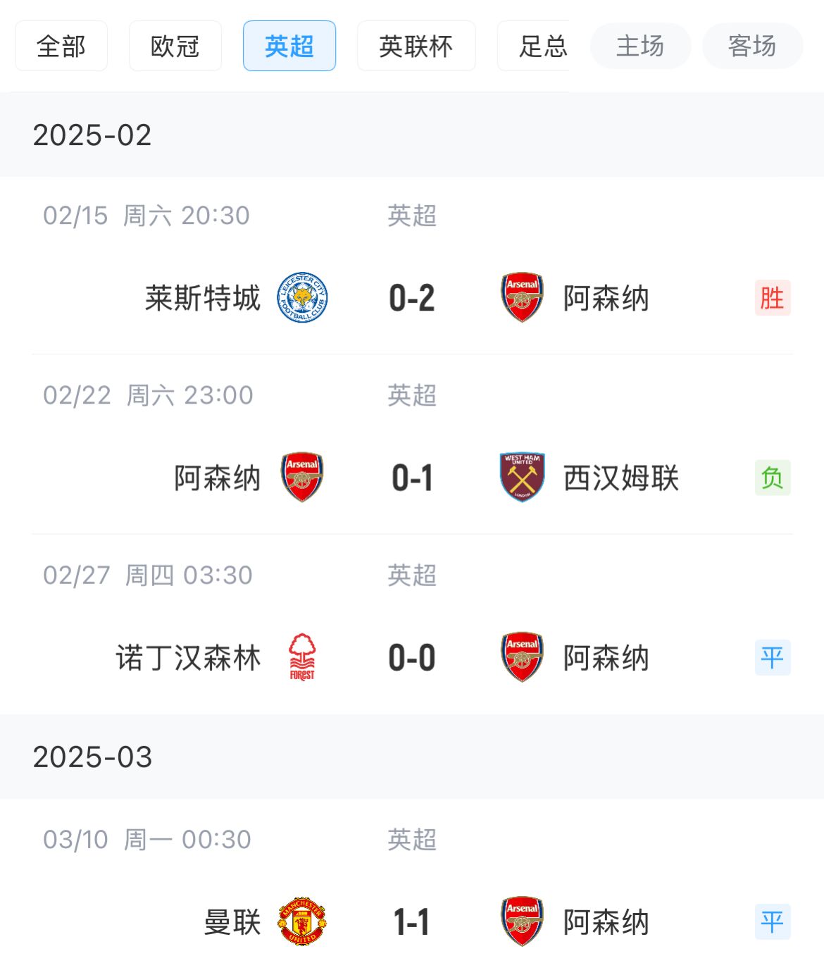 03月10日訊 本輪英超阿森納客場1-1戰平曼聯,目前落后榜首15分,爭冠基本上是天方夜譚。