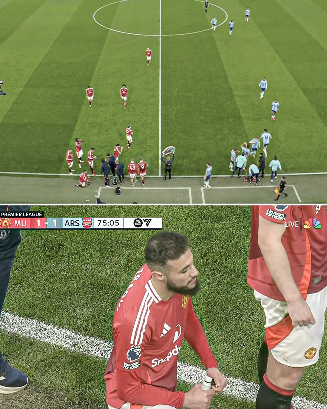 03月10日訊 本輪英超曼聯主場1-1戰平阿森納,比賽第76分鐘,就在賴斯破門后,主裁將球員叫到場邊,給了一次補水的機會。原來當時英國時間剛過傍晚,主裁判中斷比賽,是為了讓馬茲拉維在內的其他穆斯林球員可以開齋,簡單吃喝補充一點能量。英超聯賽的這一規定始于2021年。允許球員在齋月期間開齋后,于死球的情況下到場邊進食。 本文標簽: 足球 英超 曼聯 阿森納