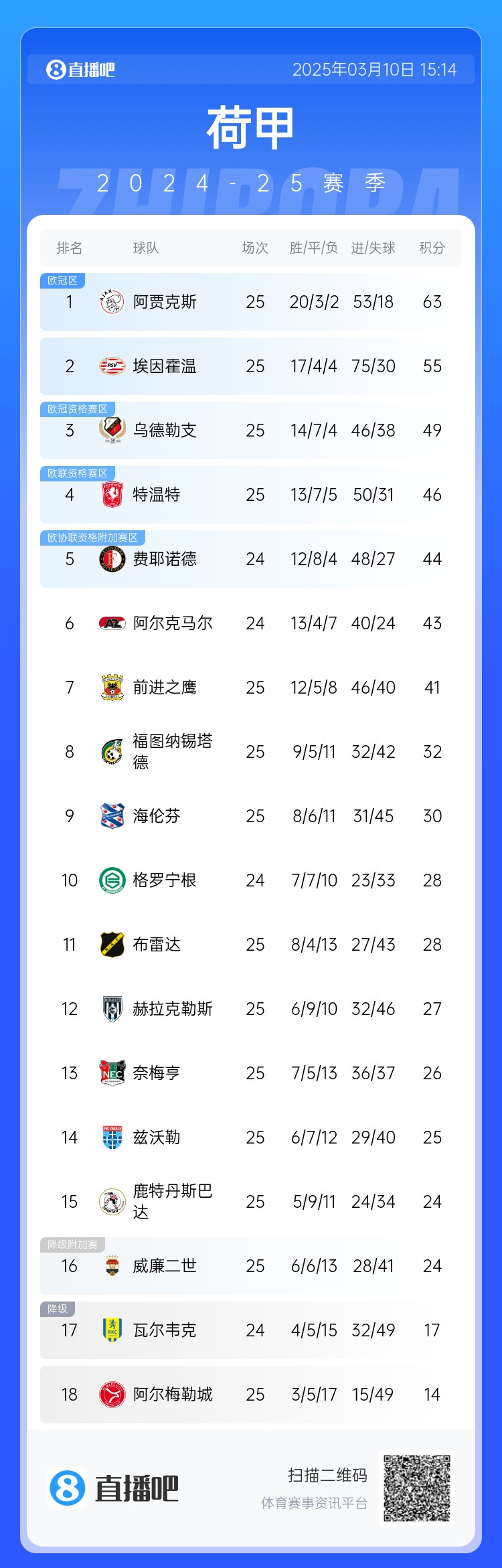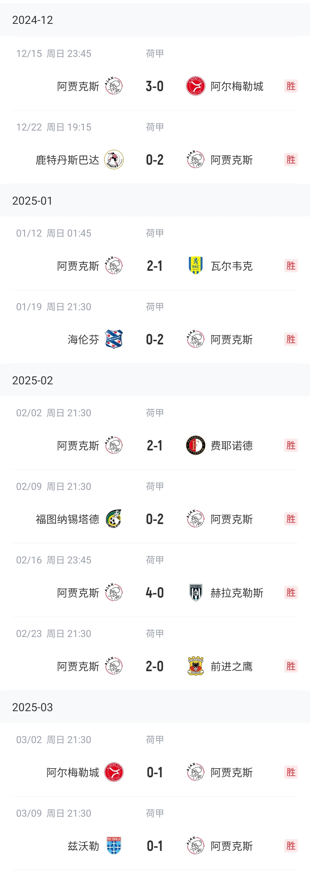 03月10日訊 在昨晚結束的荷甲第25輪中,阿賈克斯1-0擊敗茲沃勒,豪取荷甲10連勝,肯尼斯-泰勒點射制勝,華裔中場菲慈佔-天樂先發出戰70分鐘。本賽季在35歲的意大利少帥法雷奧利的帶領下,阿賈克斯還剩9輪8分領跑荷甲積分榜,有望時隔2個賽季重奪荷甲冠軍。荷甲積分榜↓ 本文標簽: 足球 五洲 荷甲