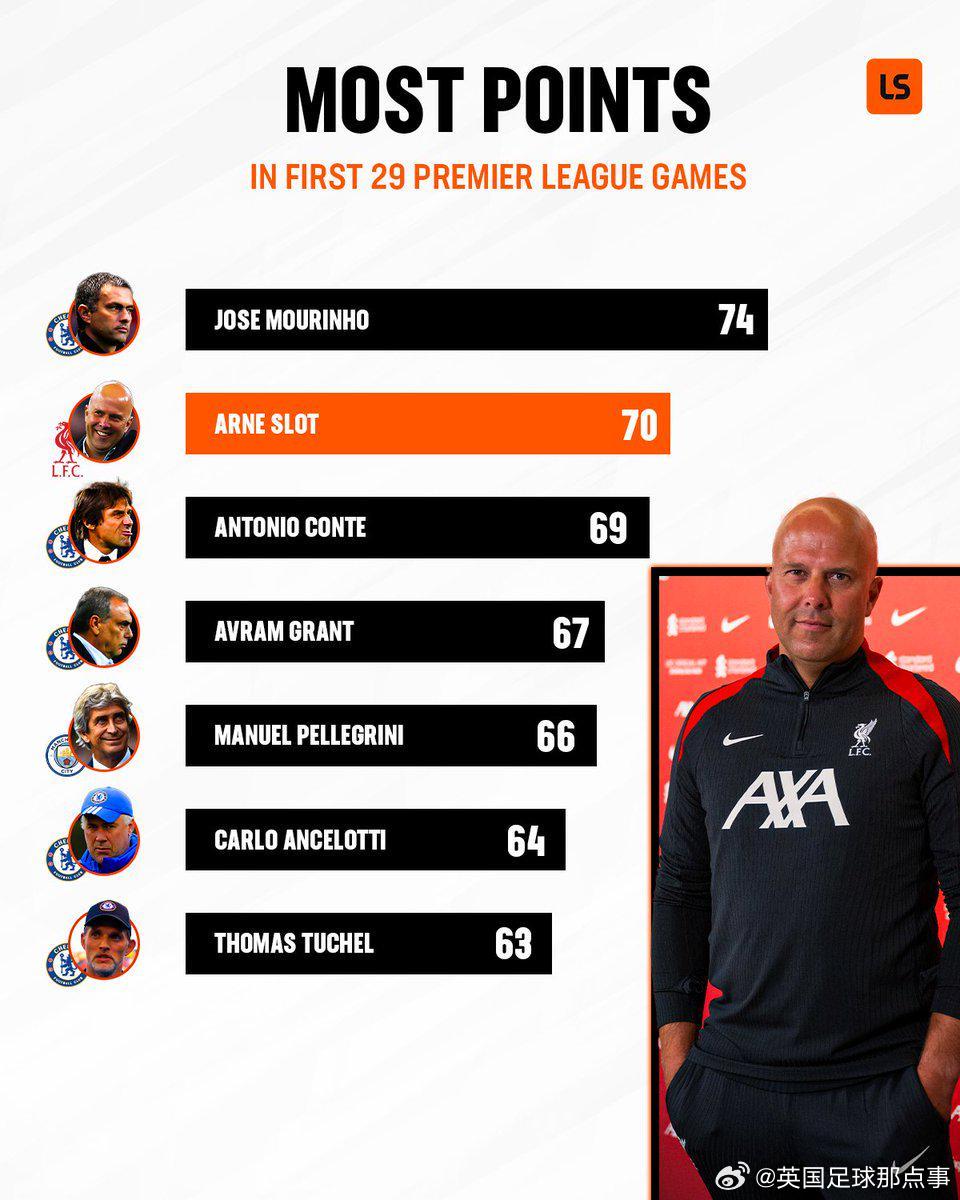 英超主帥執(zhí)教前29場比賽的最高積分排行:1??穆里尼奧(切爾西)——742??斯洛特(利物浦)——703??孔蒂(切爾西)——694??格蘭特(切爾西)——675??佩萊格里尼(曼城)——666??安切洛蒂(切爾西)——647??圖赫爾(切爾西)——63 本文標(biāo)簽: 足球 英超 切爾西 利物浦 曼城 轉(zhuǎn)載 圖赫爾 穆里尼奧 孔蒂 安切洛蒂