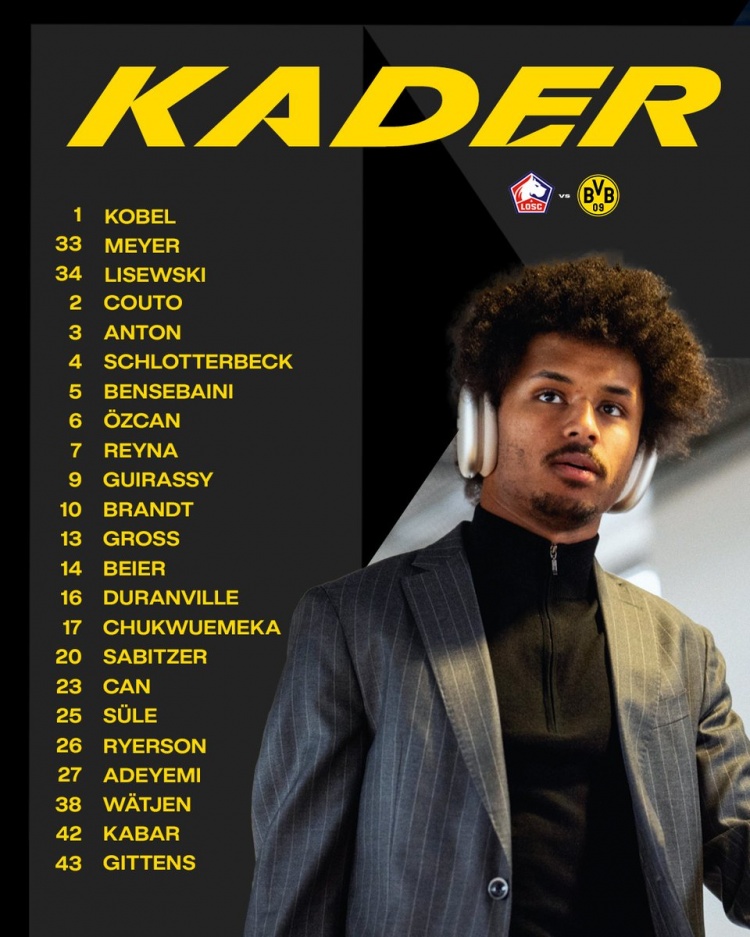 多特歐冠客戰里爾名單: