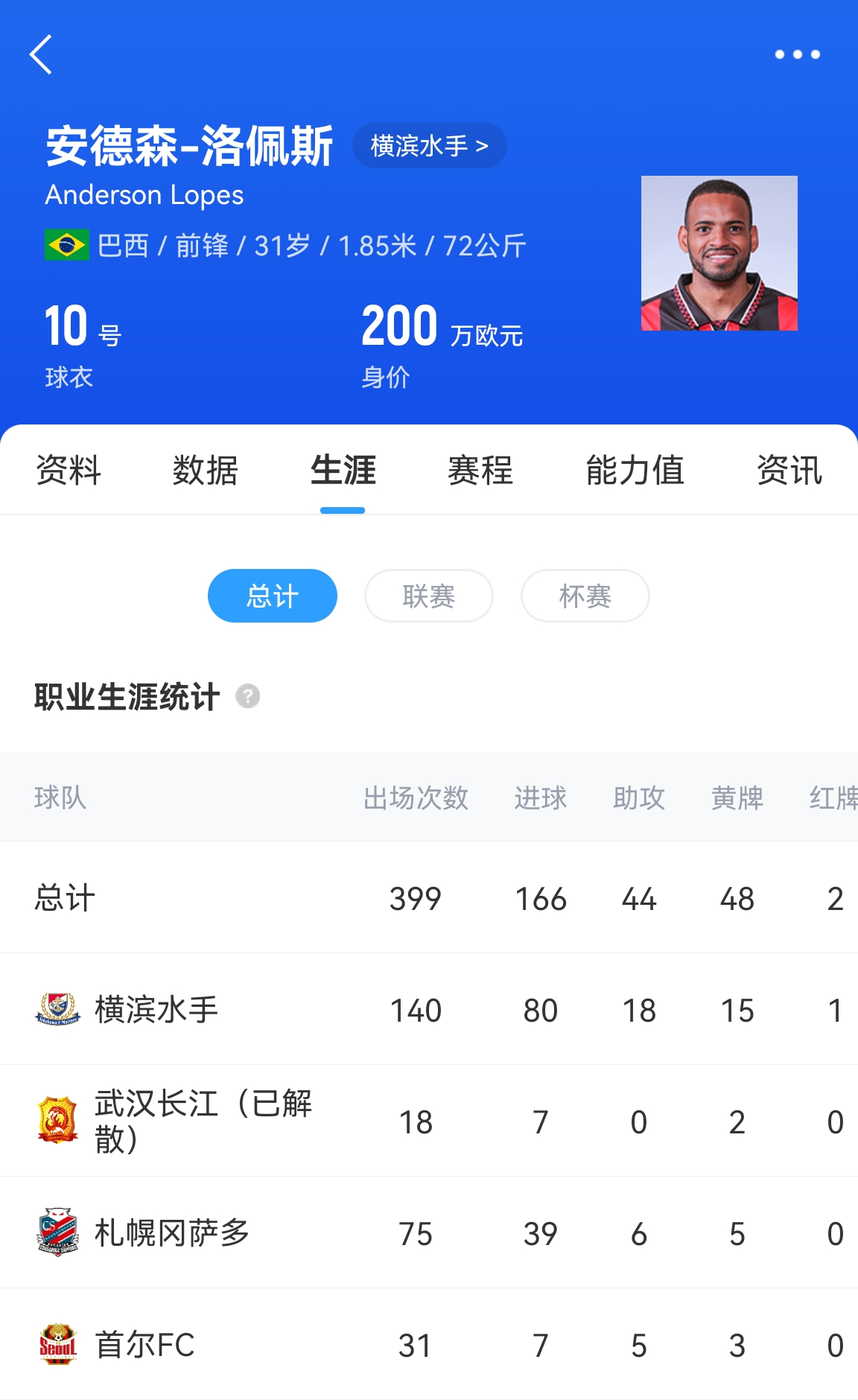 03月11日訊 海港1-4橫濱總分1-5無緣亞冠八強,橫濱水手隊長安德森-洛佩斯梅開二度,兩回合打入3球。安德森-洛佩斯曾短暫效力中超聯賽,2021賽季,洛佩斯代表武漢隊出場18次打入7球。2022年2月,武漢隊官宣洛佩斯加盟橫濱水手,轉會費180萬美元。就在這次官宣不到一年后,武漢隊宣布解散。加盟橫濱水手后,洛佩斯已為球隊出場140次打入80球,現在他已經是球隊的隊長。 本文標簽: 足球 中超 中國足球 亞冠精英