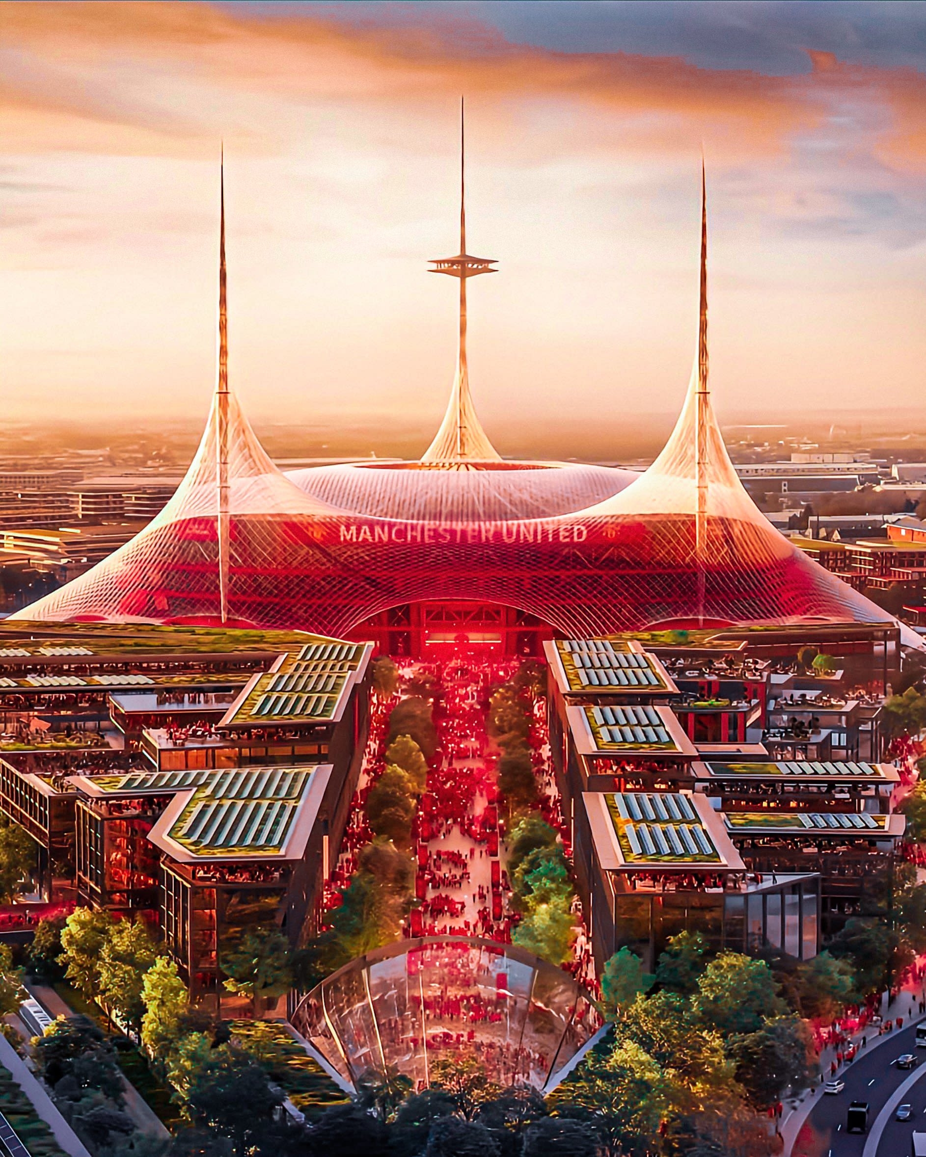 諾曼-福斯特勛爵闡釋設(shè)計(jì)理念:“這無疑是當(dāng)今世界最令人振奮的項(xiàng)目之一,具有重大的區(qū)域和國家級戰(zhàn)略意義。設(shè)計(jì)以球迷體驗(yàn)為原點(diǎn)——通過縮短看臺(tái)與球場的距離,在聲學(xué)上營造出震撼的助威聲浪。體育場被巨型頂棚環(huán)抱,兼具能量收集與雨水回收功能,其下方是兩倍于特拉法加廣場規(guī)模的公共廣場。這座外向型體育場將成為全新可持續(xù)發(fā)展社區(qū)的核心,打造全步行化、公交導(dǎo)向、生態(tài)融合的未來微型城市,締造曼徹斯特人引以為傲的全球新地標(biāo)。”
