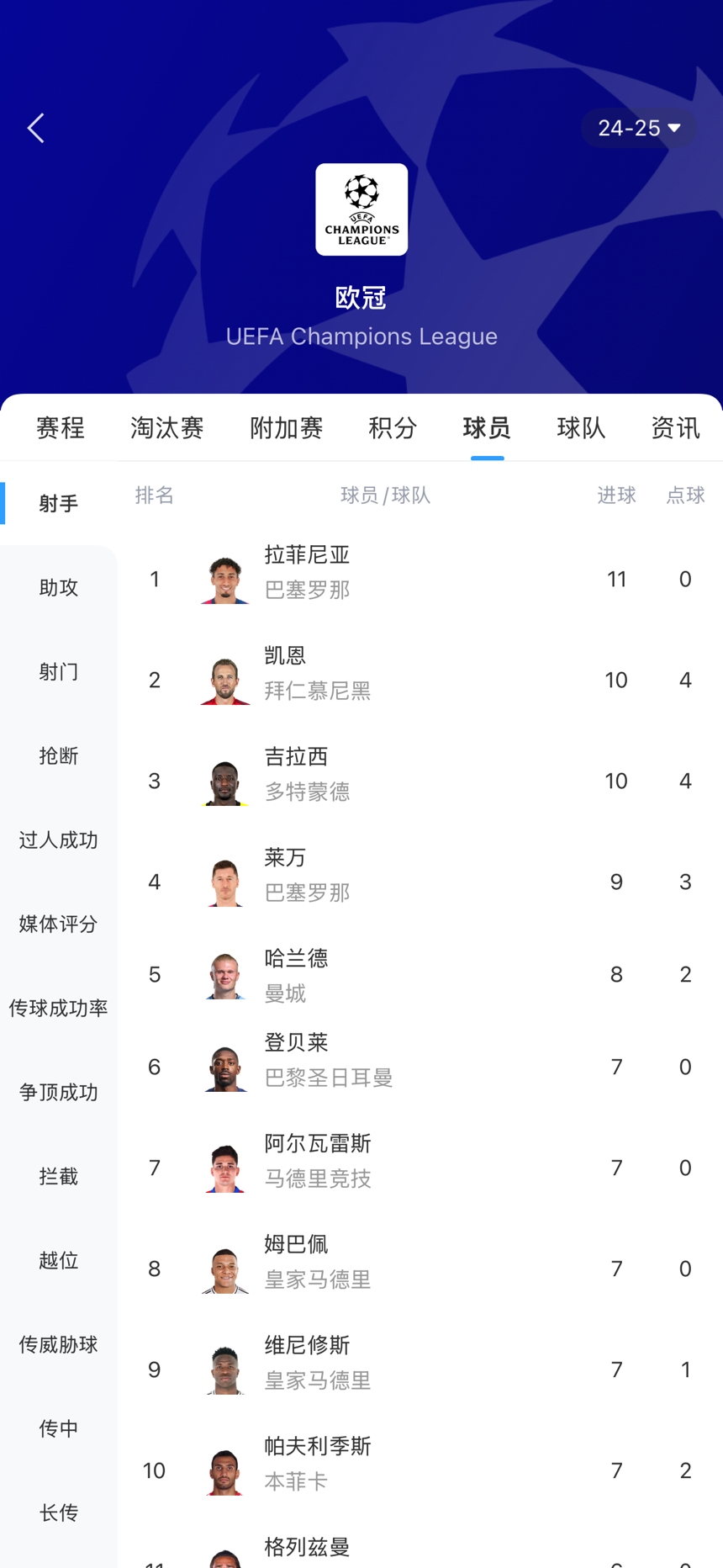 03月12日訊 歐冠1/8決賽次回合,巴薩3-1擊敗本菲卡,拉菲尼亞梅開二度。本賽季歐冠,拉菲尼亞出戰10場貢獻11球5助攻。巴薩隊史個人單賽季進球紀錄中,拉菲尼亞本賽季11球進入前五,其余四席均是梅西。1、梅西,11/12賽季,14球2、梅西,18/19賽季,12球— 梅西,10/11賽季,12球4、拉菲尼亞,24/25賽季,11球— 梅西,16/17賽季,11球本賽季歐冠射手榜↓ 本文標簽: 足球 西甲 巴塞羅那 歐冠 梅西