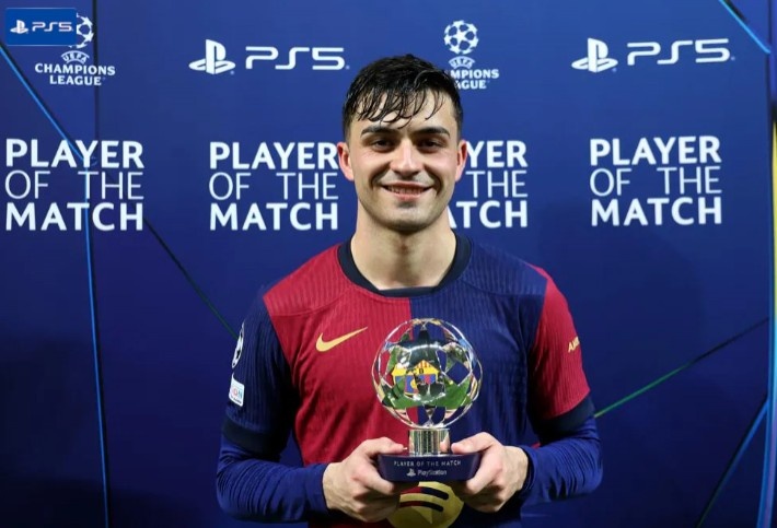 03月12日訊 歐冠1/8決賽次回合,巴薩3-1總比分4-1淘汰本菲卡,進入8強。巴薩的中場核心佩德里賽后當選全場最佳球員。