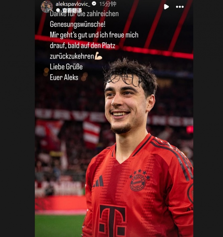 3月12日訊 拜仁20歲中場帕夫洛維奇在近日官宣將繼續因為感染缺陣,他也在社媒發文。帕夫洛維奇表示:“感謝大家的康復祝福,我感覺很好,期待很快就能回歸球場。向你們送上親切的問候。”帕夫洛維奇上次為拜仁出戰還是上個月底,而錯過德國隊比賽也意味著他將因為感染而缺戰近一個月。根據此前消息,帕夫洛維奇感染的是急性傳染病腺熱。主要癥狀包括發熱、咽喉炎和淋巴結腫大,通常通過接觸感染者傳播,大多數患者在2至4周內自愈。 本文標簽: 足球 德甲 拜仁慕尼黑