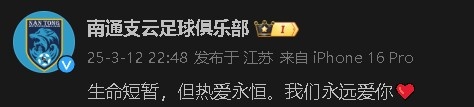 3月12日訊 成都蓉城官方發(fā)布訃告,身患重癥的成都蓉城小球迷林子金不幸去世。南通支云俱樂部社媒發(fā)文悼念:生命短暫,但熱愛永恒。我們永遠(yuǎn)愛你?? 本文標(biāo)簽: 足球 中國足球 中超 成都蓉城 中甲 南通支云