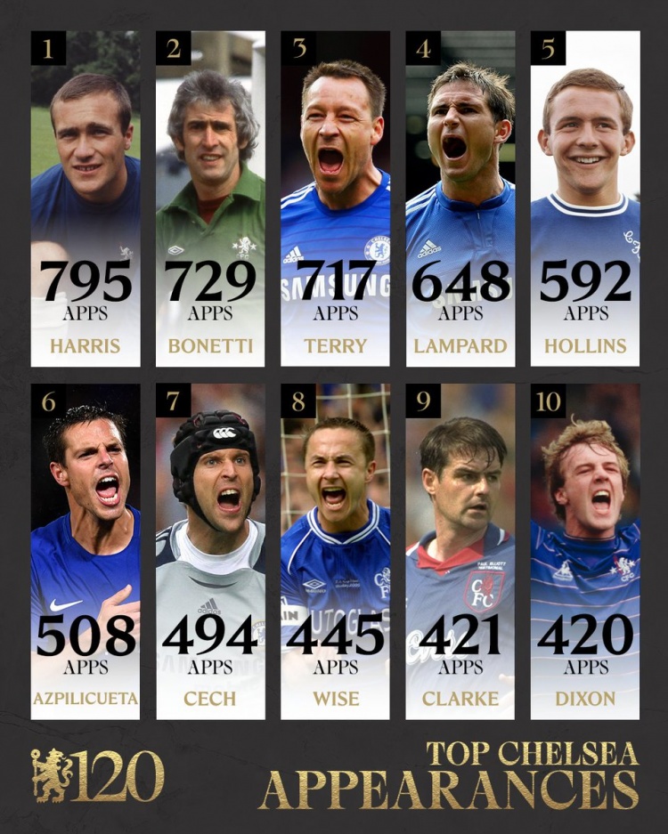 3月12日訊 切爾西俱樂部成立120周年,球隊官方社媒曬截至目前球員代表球隊出場次數榜,羅恩-哈里斯第一,特里第三,蘭帕德第四,AZP第六,切赫第七。切爾西隊史出場榜:1、羅恩-哈里斯:795場2、彼得-博內蒂:729場3、特里:717場4、蘭帕德:648場5、約翰-霍林斯:592場6、阿斯皮利奎塔:508場7、切赫:494場8、丹尼斯-懷斯:445場9、史蒂夫-克拉克:421場10、凱里-迪克森:420場 本文標簽: 足球 英超 切爾西