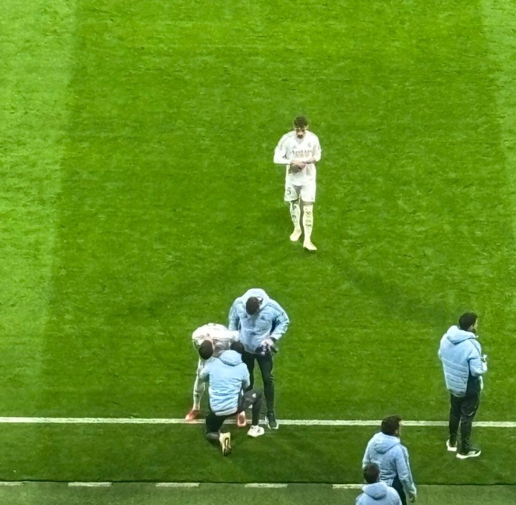 希望無(wú)礙,在維尼修斯踢點(diǎn)球的間隙,巴爾韋德在場(chǎng)邊接受治療