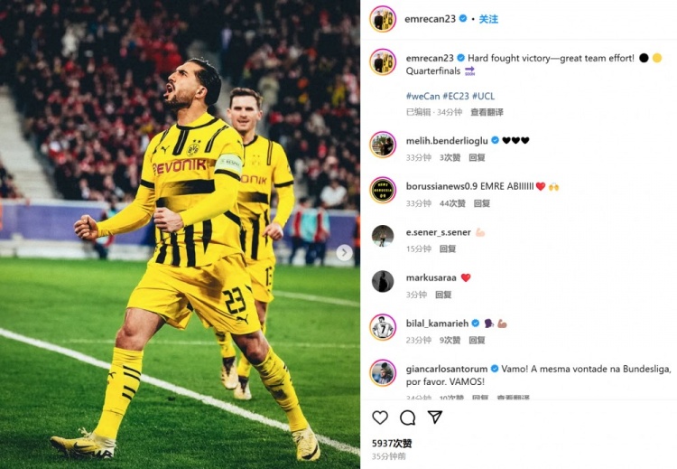 3月13日訊 多特在本輪歐冠2-1擊敗里爾,埃姆雷-詹點射為球隊扳平比分。第54分鐘,吉拉西造點,埃姆雷-詹主罰點球,騙過門將打中路得手。埃姆雷-詹也在賽后通過社媒曬出了自己的怒吼慶祝照,并配文:“全隊努力鏖戰贏下勝利??????歐冠八強戰????”根據賽程,多特將在4月上旬和巴薩在歐冠八強戰迎來兩回合對抗。 本文標簽: 足球 德甲 多特蒙德 西甲 巴塞羅那 法甲 里爾 歐冠