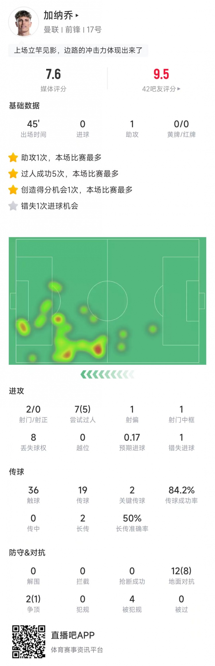 1月31日訊 歐聯杯第8輪比賽,加納喬替補出場送出助攻,幫助曼聯客場2-0擊敗布加勒斯特星。加納喬本場比賽數據:出場時間——45分鐘助攻——1射門——2(射正0)嘗試過人——7(成功5全場最多)丟失球權——8預期進球——0.17錯失進球——1觸球——36傳球——19關鍵傳球——2傳球成功率——84.2%長傳——2長傳準確率——50%地面對抗——12(成功9)爭頂——2(成功1)被犯規——4媒體評分——7.6 本文標簽: 足球 英超 曼聯 歐聯杯