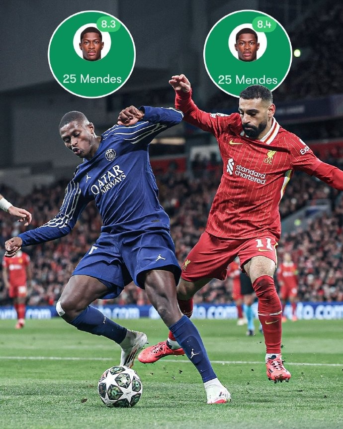 面對薩拉赫和路易斯-迪亞斯,奧斯曼-登貝萊&巴爾科拉強勢搶鏡,維蒂尼亞領(lǐng)銜的巴黎中場在和“邁巴赫”組合的對抗中同樣不落下風。本場比賽,維蒂尼亞以93%的傳球成功率刷出111次傳球,成為了莫塔之后又一位在歐冠淘汰賽兩回合較量中均完成傳球次數(shù)破百的巴黎球員。另一位葡萄牙球員若昂-內(nèi)維斯的傳球成功率同樣超過90%,法比安-魯伊斯在90分鐘的出場時間內(nèi)贏得6次對抗和4次成功搶斷。