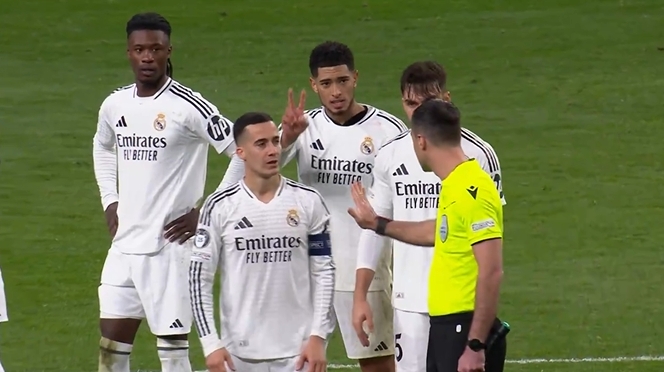 皇馬全員抗議!檢查小蜘蛛是否2次觸球時,貝林等人紛紛伸2根手指