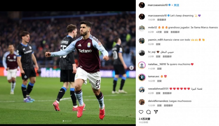 3月13日訊 維拉在本輪歐冠3-0完勝布魯日,阿森西奧替補雙響。第50分鐘,利昂-貝利禁區前給出挑傳,阿森西奧凌空抽射近角破門。第61分鐘,拉什福德左路撞墻殺進禁區,倒三角找到阿森西奧,后者抽射破門。阿森西奧也在賽后曬出自己的慶祝照,并配文:“讓我們繼續保持夢想????????”。阿森西奧在冬窗從巴黎租借加盟后8場打進7球,他也將在歐冠八強戰迎戰巴黎。 本文標簽: 足球 法甲 巴黎圣日耳曼 英超 阿斯頓維拉 歐冠