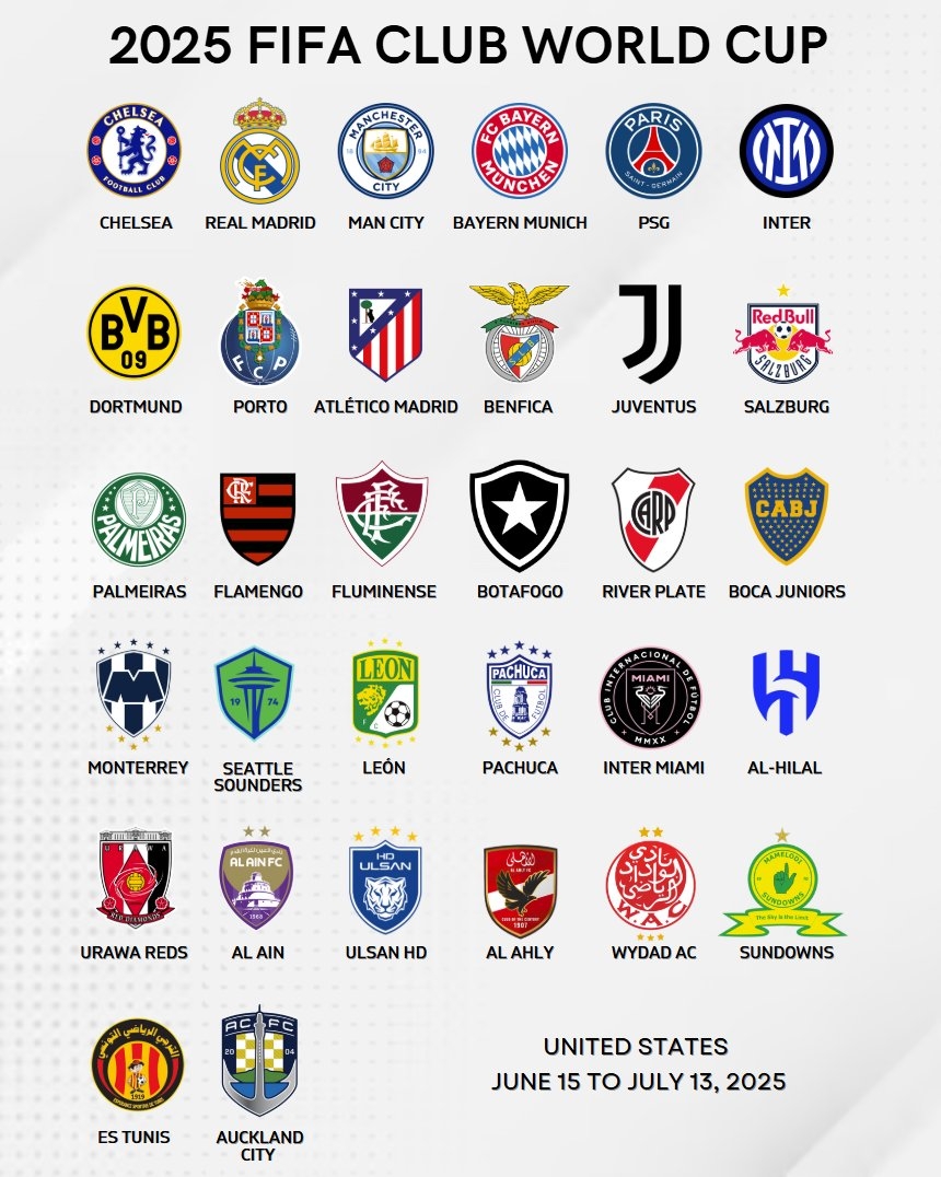各隊訓練地點分布廣泛,曼城在佛羅里達林恩大學,多特使用邁阿密國際設施,尤文選擇西弗吉尼亞格林布賴爾度假村,拜仁在奧蘭多,皇馬在棕櫚泉,大巴黎在加州大學爾灣分校。